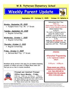 Parent Weekly Bulletin September 29 – October 3, 2025